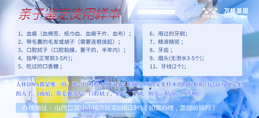 晉中榆次萬核親子鑒定機構(gòu)是一家專業(yè)從事親子鑒定、親緣鑒定、個人基因檢測等方面的高端科技公司,其鑒定結(jié)果具有準確性、可靠性和保密性等優(yōu)勢。