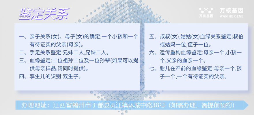 贛州章貢附近做親子鑒定機構(gòu)地址...[詳細]