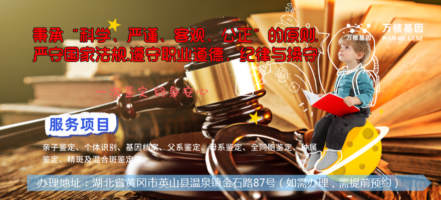 如果您對親子鑒定有需求,無論是何種原因,英山萬核親子鑒定咨詢服務(wù)機構(gòu)都能夠為您提供全面的親子鑒定服務(wù),讓您得到最可靠的答案,為了幫助您確認親子關(guān)系,我們提供在線咨詢服務(wù),電話4001789498(辦理地址:湖北省黃岡市英山縣溫泉鎮(zhèn)金石路87號(如需辦理,需提前預(yù)約))。