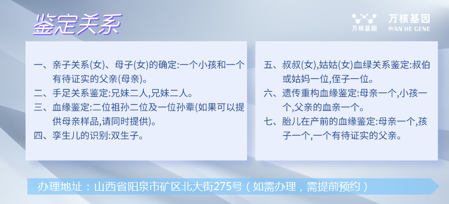 在科學面前真相只有一個,陽泉礦區(qū)萬核親子鑒定咨詢中心抱著這樣的信念,懷著對DNA科技的景仰和虔誠的這一個的目標,我們走出了一條嚴謹而深遠的道路.....,我們采用嚴格技術(shù)標準為社會各界提供親子鑒定和個人身份識別的服務(wù)。