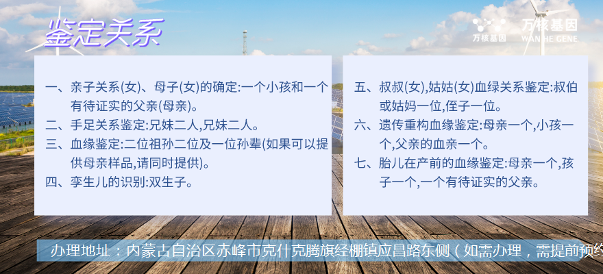 具體鑒定方案可咨詢克什克萬核親子鑒定服務(wù)機(jī)構(gòu),辦理地址:內(nèi)蒙古自治區(qū)赤峰市克什克騰旗經(jīng)棚鎮(zhèn)應(yīng)昌路東側(cè)(如需辦理,需提前預(yù)約)萬核機(jī)構(gòu)以誠信為本,秉承拒絕一切“真”、“精”、“密”的原則,為廣大客戶提供精準(zhǔn)、高效、保密的隱私個(gè)人DNA親子鑒定的服務(wù)。