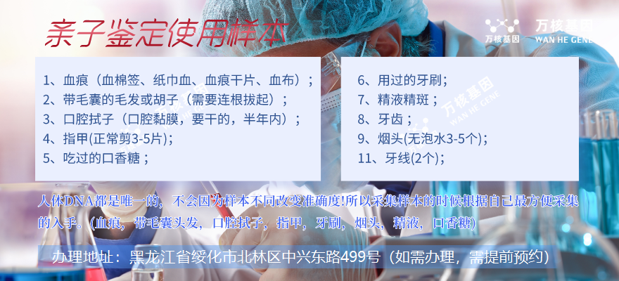 綏化親子鑒定機(jī)構(gòu)地址在哪里...[詳細(xì)]