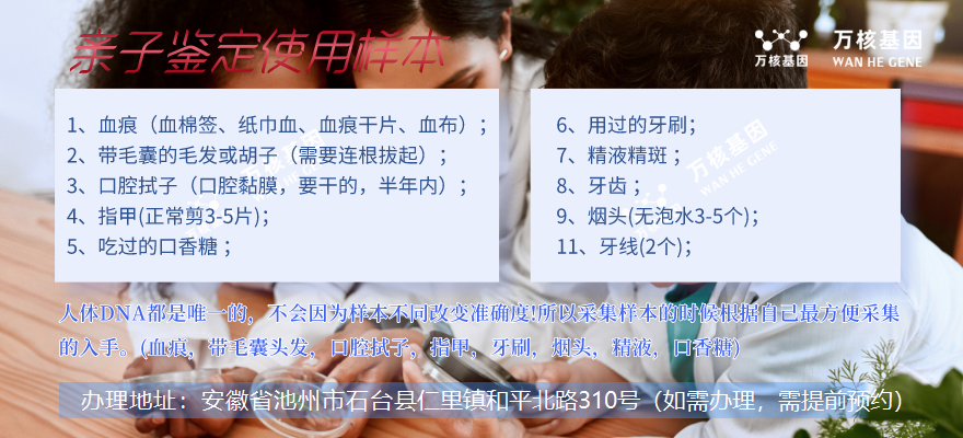 當(dāng)然,選擇一家權(quán)威的親子鑒定服務(wù)機(jī)構(gòu)也是非常重要的。在石臺(tái)地區(qū),萬(wàn)核DNA親子鑒定服務(wù)機(jī)構(gòu)是一個(gè)值得信任的,石臺(tái)萬(wàn)核DNA親子鑒定服務(wù)中心。我們?cè)谌珖?guó)范圍內(nèi)設(shè)有親子鑒定分部受理點(diǎn)及聯(lián)系方式,為國(guó)內(nèi)外客戶(hù)提供專(zhuān)業(yè)權(quán)威安全、可靠、準(zhǔn)確的無(wú)創(chuàng)胎兒親子鑒定服務(wù)。對(duì)于鑒定過(guò)程還提供全程保密,保護(hù)客戶(hù)的隱私。