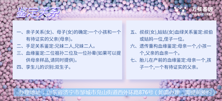 在現(xiàn)代社會(huì),親子關(guān)系的判定尤為重要。例如,父母想要確定自己的孩子是否為親生子女,或者在繼承財(cái)產(chǎn)等方面需要進(jìn)行親子關(guān)系鑒定。此時(shí),日照東港萬(wàn)核親子鑒定服務(wù)中心提供了快捷、準(zhǔn)確和可靠的解決方案,以確保親子關(guān)系的真實(shí)性得到確認(rèn)。