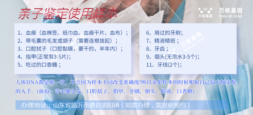 費縣個人親子鑒定鑒定樣本類型及采集注意事項