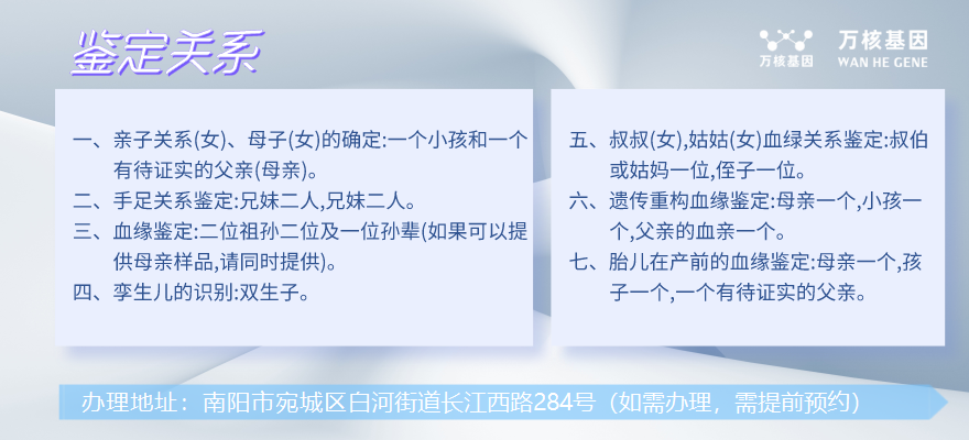 (注意:請嚴格按照南陽宛城萬核親子鑒定,樣本采集規(guī)范嚴謹,每個步驟都經過認真的檢查和確認。)
