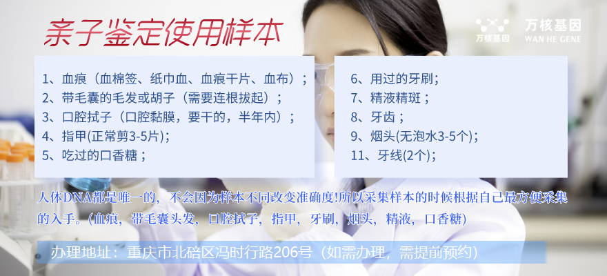 可在線咨詢:重慶北碚懷孕期間親子鑒定、司法親子鑒定、移民親子鑒定、入戶親子鑒定、中考報(bào)告親子鑒定、高考親子鑒定、個(gè)人隱私親子鑒定等等咨詢服務(wù),萬(wàn)核親子鑒定咨詢服務(wù)機(jī)構(gòu),聯(lián)合了多家權(quán)威法醫(yī)物證司法鑒定及基因檢測(cè)公司的親子鑒定服務(wù)咨詢機(jī)構(gòu),采用先進(jìn)的DNA檢測(cè)技術(shù),確保鑒定結(jié)果的準(zhǔn)確性和可靠性。