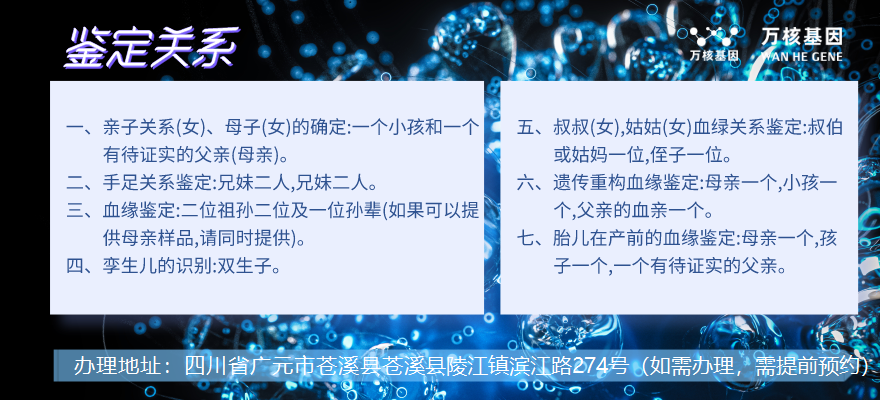 6.了解鑒定流程:在進(jìn)行鑒定前,向蒼溪萬(wàn)核親子鑒定服務(wù)中心了解鑒定的流程和方法,以便更好地理解鑒定結(jié)果。