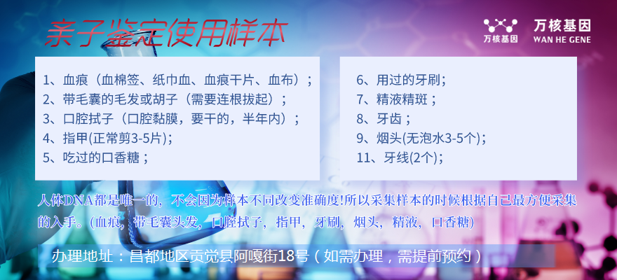 注:在采集樣本前,應(yīng)與貢覺萬核親子鑒定咨詢中心了解樣本類型及其適用性,根據(jù)需要進行選擇,以提高親子鑒定的準確性。