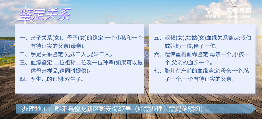 在科學(xué)面前真相只有一個,彭陽萬核親子鑒定咨詢中心抱著這樣的信念,懷著對DNA科技的景仰和虔誠的這一個的目標(biāo),我們走出了一條嚴(yán)謹(jǐn)而深遠(yuǎn)的道路.....,我們采用嚴(yán)格技術(shù)標(biāo)準(zhǔn)為社會各界提供親子鑒定和個人身份識別的服務(wù)。